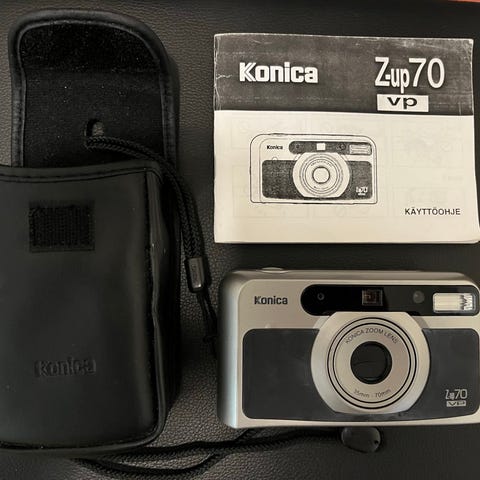 Konica Z-up 70 Super, 35-70mm zoomilla varustettu 35mm filmiä käyttävä taskuun mahtuva pokkari.
