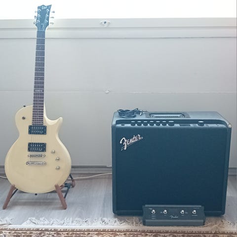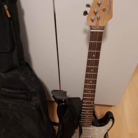 Siintä hyvä setti tulevalle kitaristille,mukaan vahvistin,jalusta,kuljetuspussi,varakielet ja plektroja