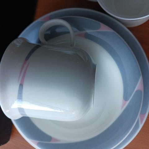 Vähän käytetyt, yleisilmeeltään siistit kupit ja tassit/lautaset. Pientä tummentumaa/patinaa voi olla. 4kpl.