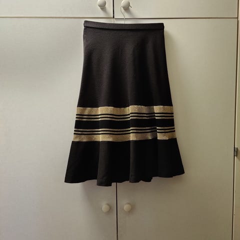 Myydään samettinen diy kellohame, jossa vyötärö n. 35cm leveä ja pituus 51cm.