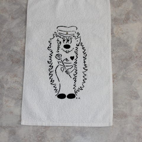 Uusi valkoinen 30x50cm pyyhe, käsinpainettu poika ylioppilas peikko kuva.