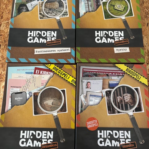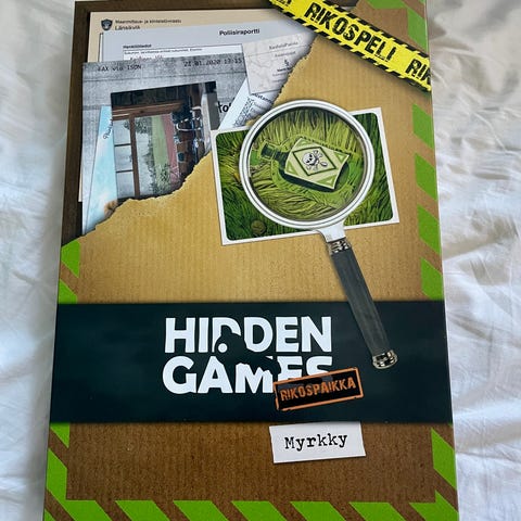 Hidden Games Myrsky rikospeli on lautapeli, jossa pelaajat ratkaisevat kuvitteellisen rikostapauksen erilaisten vihjeiden ja todistusaineistojen avulla. Peli sisältää muun muassa asiakirjoja, valokuvia ja muita tutkintamateriaaleja, joita tutkimalla pyritään selvittämään tapahtumien kulku ja syyllinen. Soveltuu useammalle pelaajalle yhteiseen ongelmanratkaisuun ja tarinalliseen pelielämykseen.