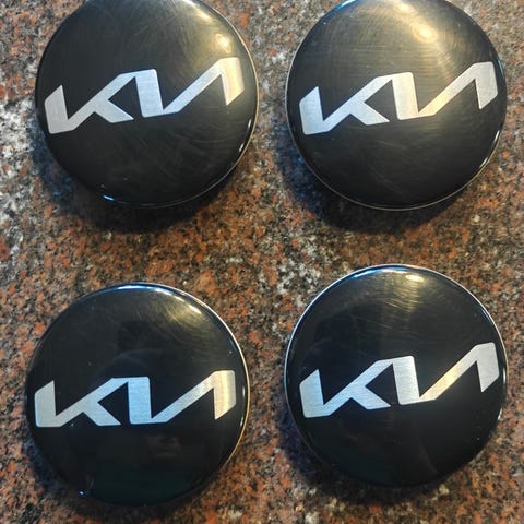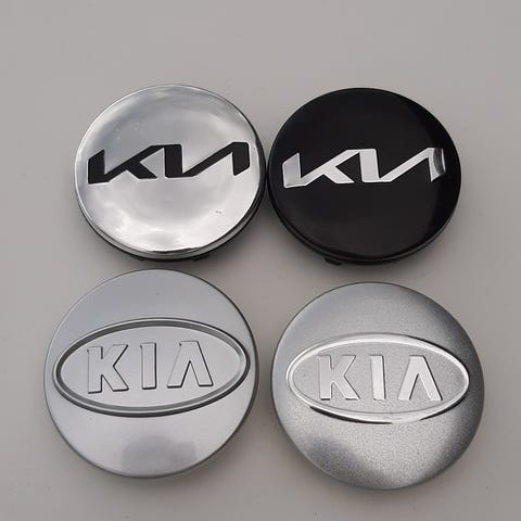 Kia vannekeskimerkit, halkaisija noin 55. 5mm. Väri musta, keskellä Kia-logo vaalealla värillä. Sopivat vanteiden keskikuppeihin, mitat tarkistettavissa kuvasta digitaalimitan avulla. 4kpl