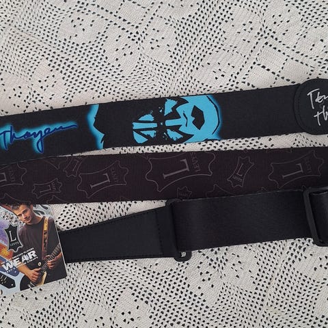 Hyväkuntoinen Kiss army- kitaran hihna.