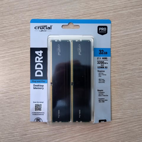 G.Skill Trident Z RGB DDR4 RAM-muisti, yhteensä 32 Gt kapasiteettia kahdessa 16 Gt:n moduulissa (2x16 Gt). Muistin kellotaajuus on 3200 MHz ja viiveet CL16-18-18-38, käyttöjännite 1,35 V. Muistimoduuleissa on RGB-valaistus ja ne soveltuvat DDR4-yhteensopiviin pöytäkoneisiin.