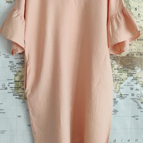 Nanso Luoto vuorellinen pellavamekko koko 42, taskut sivuissa, vetoketju takasaumassa
