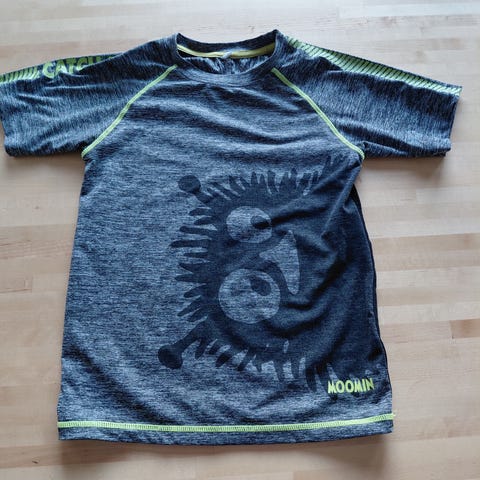 Muumi lasten haalari, koko 122. Unisex-mallinen, pitkähihainen ja pitkälahkeinen haalari, jossa on vetoketju edessä ja huppu. Muutaman kerran käytetty.