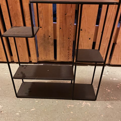 Viimeisen kuvan tapainen seinähylly. 3 hyllyä. Hyllylevyissä saattaa olla jotain jälkiä.