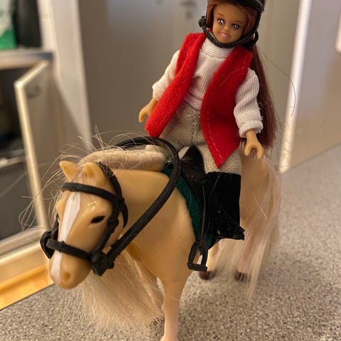 Kuvien mukaisessa kunnossa Lundby nukketaloon kuuluva heppa.