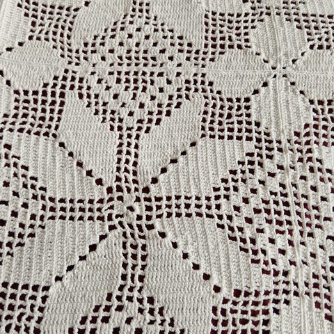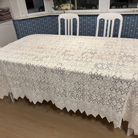 Käsin virkattu , kalastajlangasta ,kapean sängyn päiväpeitto , ehjä käyttämätön.