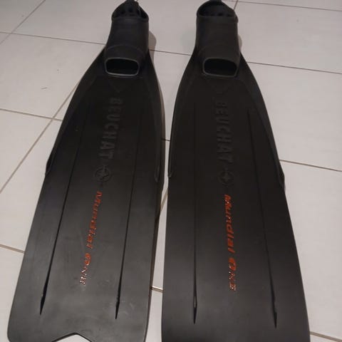 Myydään käytetyt Beuhat jet fin kumiräpylät teräksiseillä kantajousilla. Koko 43-48, mutta kapeaa mallia.