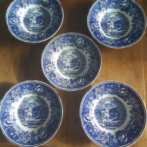 4 kpl Arabian maisema sinen lautasia. Koko 19,5 cm