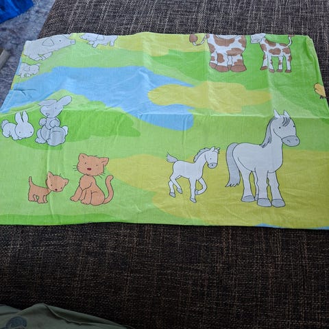 Elefantti aiheinen pussilakana ja tyynyliina. 90-luvulta. Pesty hajustamattomalla pesuaineella.