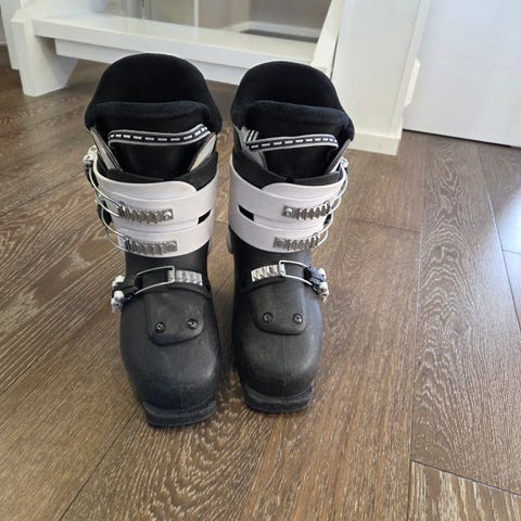 Hyvässä kunnossa olevat temppu sukset ja suksiin monot. Monot ovat kokoa 26.5 eli kokotaulukon mukaan 42 mutta lähempänä kengän kokoa 40 ja sukset ovat 139cm pitkät