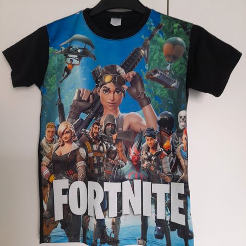 Fortnite aiheinen t-paita, polyesteria. Koko 128. Paljon pidetty ja nimikoitu.