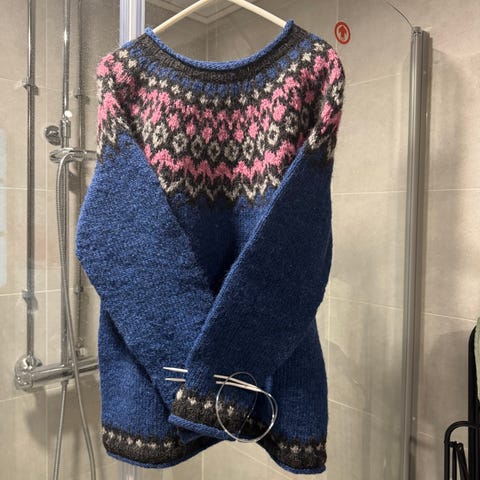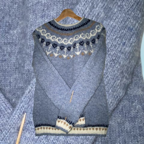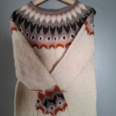 Käsin kudottu/ neulottu villapusero koossa S. Materiaali; villaa 65%, alpakkaa 35%.
