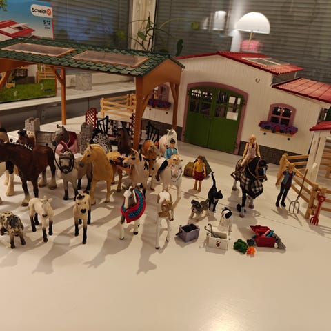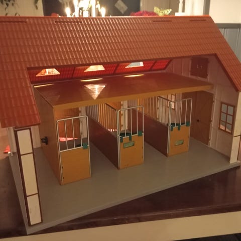 Myydään muovinen schleich talli ja kuvassa näkyvät tarvikkeet. Halkeamaa lukuunottamatta todella hyvässä kunnossa eikä halkeama omasta mielestäni vaikuta edes ulkonäköön. Mukaan löytyy myös halutessa muita tarvikkeita. Hinta ei ole kiveen hakattu oman näkemyksen voi esittää. Postitus onnistuu ostajan piikkiin.