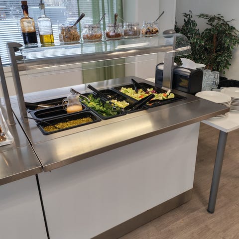 Lämminpitopöytä ruoan esillepanoon ammattikeittiöön tai lounasravintolaan. Pöydässä on useita GN-astioille sopivia altaiden paikkoja, läpinäkyvät kupukannet sekä lasinen suoja asiakkaan puolella. Rakenne on pääosin ruostumatonta terästä ja alaosassa on kaapistot ja tilaa tekniikalle sekä tarvikkeille. Soveltuu lämpimien ruokien tarjoiluun linjastossa.