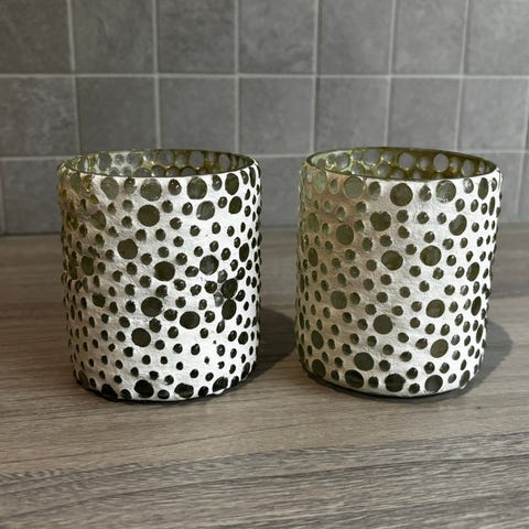 Kaunis frosted (huurrettu/mattalasinen) tuikkukippo kultaisilla lumihiutaleilla koristeltuna – täydellinen talvinen tai jouluinen tunnelmanluoja kynttilälle tai led-tuikulle. Pieni koko sopii ikkunalaudalle, ruokapöydälle, makuuhuoneen yöpöydälle tai lahjaksi. Mahdollisesti Perfect Home -merkkinen, mutta tyylikäs ja laadukas joka tapauksessa!