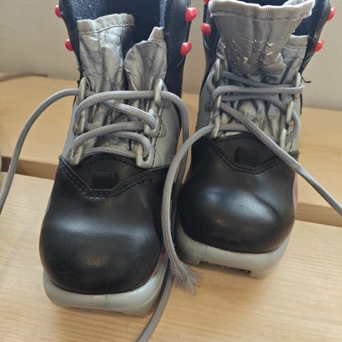 Alpina lasten hiihtomonot. Kokolaput kuluneet pois, mutta verrattuna kokoon 31 ovat koon tai kaksi pienemmät.