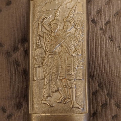 Sarome sytytin alkuperäispakkauksessaan, sytyttimessä kaiverrus