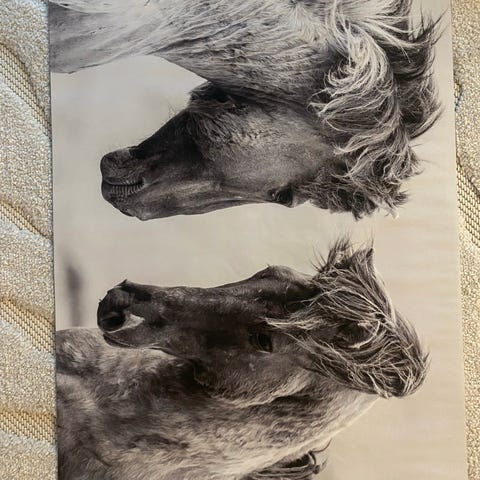 Kaunis ja herkkä kehystetty hevostaulu, canvas. 72cm x 52cm.