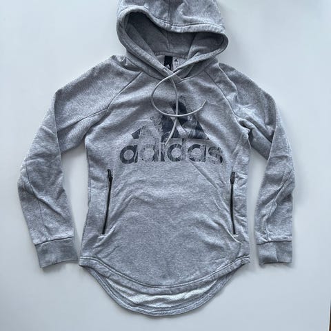 Adidas pusero naisille, koko S. Harmaa hupparimallinen yläosa, jossa edessä suuri Adidas-logo. Valmistettu pääosin puuvillasta, sisäpinta pehmeää neulosta. Edessä kengurutasku ja säädettävä huppu. Sopii arki- ja vapaa-ajan käyttöön.