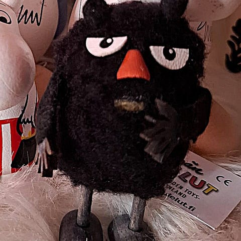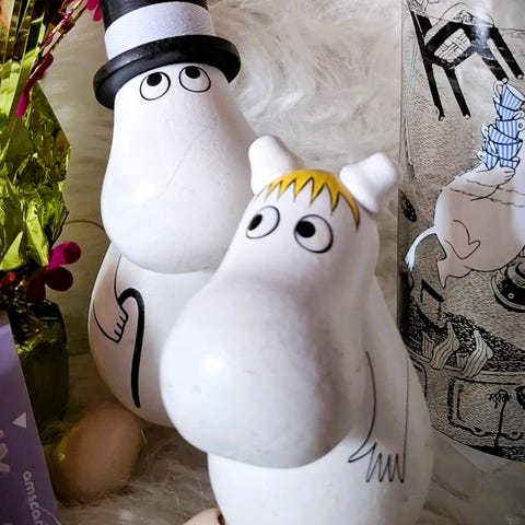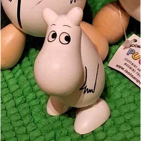 Erikoinen käsintehty ja maalattu Muumilelu.