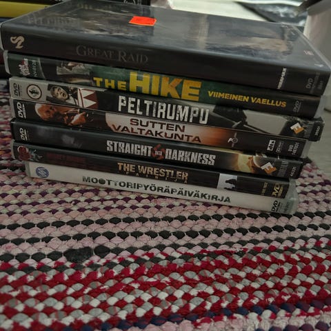 Sekalainen DVD elokuvapaketti Mukana on muun muassa draamaa, komediaa, rikos- ja jännityselokuvia sekä klassikkoelokuvia.