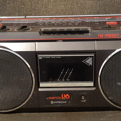 Panasonic radio kuuluu hyvin kasetti tomii, erittäin siisti soitin, päällä olevat säätimet rahisee.