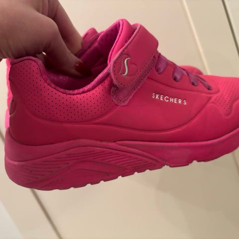 Skechers D’Lites tennarit, koko 38. Väritys vaaleanpunainen, harmaa ja valkoinen. Päällinen yhdistää verkkomateriaalia ja synteettisiä osia. Nauhakiinnitys, pehmustettu varsi ja kieli. Paksu, kuvioitu ulkopohja tarjoaa pitoa. Soveltuvat jokapäiväiseen käyttöön ja vapaa-aikaan.
