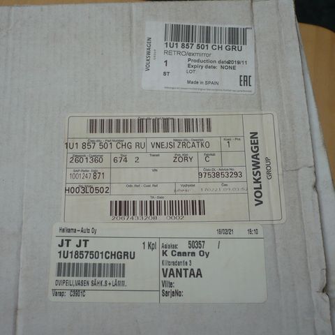 Runko ja sähköosat uusi, ulkokuori vanha, peiliosa rikki