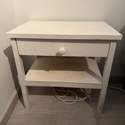 Valkoinen Malm yöpöytä. Kunto kohtalainen. Nouto Porvoon Hermanninsaaresta.