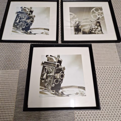 Pienet kanavatyö kukkataulut puukehyksillä. 4kpl. 5€/kpl