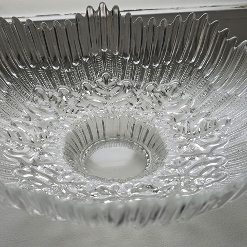 Riihimäen Lasin soikea tarjoilukulho/hedelmävati. Puristelasia. Mitat n. 28x17 cm. Teksti "Riihimäki" pohjan keskellä.