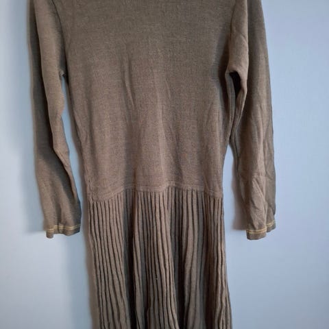 Hauskan mallinen neulemekko tai paituli, Carina -merkkinen. Koko on 36-38. Tekokuituinen, mutta ei ole merkitään mikä niistä. Hyvälaatuinen, koska ei ole tullut merkittävästi billingiä siis ei ole nukkaantunut.