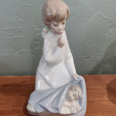 Keraaminen valkoinen naisfiguuri patsas