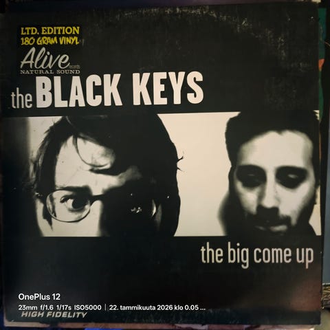 Kaksi upeaa The Black Keys -albumia, molemmat ovat sinetöityjä ja erinomaisessa kunnossa.The Black Keys on yhdysvaltalainen rock-duo, joka perustettiin Akronissa, Ohiossa vuonna 2001. Ryhmän jäsenet ovat Dan Auerbach (kitara, laulu) ja Patrick Carney (rummut). Duo aloitti riippumattomana yhtyeenä, nauhoittaen musiikkia kellareissa ja tuottaen omat levyjään, ennen kuin ne lopulta nousivat yhdeksi suosituimmista garage rock -artisteista genren toisen aallon elvyttyä 2000-luvulla. Yhtyeen raakasti blues-rock-äänimaisema ammentaa suurelta osin Auerbachin blues-vaikutteista, mukaan lukien Junior Kimbrough, R.L. Burnside, Howlin' Wolf ja Robert Johnson.Lapsuudesta saakka ystävinä olleet Auerbach ja Carney perustivat yhtyeen, kun he jättivät yliopiston kesken. Allekirjoitettuaan indie-levy Alive -yhtiön kanssa he julkaisivat debyyttialbuminsa The Big Come Up vuonna 2002, mikä toi heille uuden sopimuksen Fat Possum Recordsin kanssa. Seuraavan vuosikymmenen aikana The Black Keys rakensivat maanalaista fanikuntaa kiertämällä laajasti pieniä klubikiertueita, julkaisemalla säännöllisesti albumeita ja esiintymällä musiikkifestivaaleilla sekä lisensoimalla kappaleitaan laajasti. Kolmas albuminsa Rubber Factory sai kriitikoiden ylistystä ja kasvatti bändin profiilia, mikä lopulta johti levytyssopimukseen suurten levy-yhtiöiden kanssa Nonesuch Recordsin kanssa vuonna 2006. Omat tuotantonsa hoitaen ja nauhoittaen ensimmäiset neljä levyään tilapäisissä studioissa, duo äänitti Attack & Release -albumin ammattitason-studiossa ja palkkasi tuottaja Danger Mousein, joka myöhemmin on tullut yhtyeen useasti yhteistyökumppaniksi.Yhtyeen kaupallinen läpimurto tapahtui vuonna 2010 albumin Brothers myötä, joka yhdessä suositun singlekappaleen "Tighten Up" kanssa voitti kolme Grammy-palkintoa. Vuoden 2011 seuraaja El Camino sai kriitikoiden suosion ja saavutti Billboard 200 -listan toisen paikan, mikä johti yhtyeen uran ensimmäiseen areenan konserttikiertueeseen, El Camino Touriin. Levy ja sen hitti-single "Lonely Boy" voittivat vielä kolme Grammy-palkintoa. Vuonna 2014 he julkaisivat kahdeksannen albuminsa Turn Blue, heidän ensimmäisen ykköslevynsä Yhdysvalloissa, Kanadassa ja Australiassa. Turn Blue Tourin päättymisen jälkeen vuonna 2015 duo piti tauon useiksi vuosiksi työskennelläkseen sivuprojekteissa ja tuottaakseen muita artisteja.Duo palasi vuonna 2019 yhdeksännen albuminsa Let’s Rockilla. Vuonna 2021 he julkaisivat Delta Kreamin, kunnianosoituksen Mississippin hill country bluesille. Palattuaan alkuperäisen sävellyksen pariin Dropout Boogie julkaistiin vuonna 2022. Vuonna 2024 he julkaisivat Ohio Players -albumin, mutta se kärsi äkillisesti peruutetun areenakiertueen vuoksi sisäisen myllerryksen ja johtoryhmän muutosten keskellä. Epäonnistumisista huolimatta he kanavoivat vastoinkäymiset No Rain, No Flowers -albumiin, joka julkaistiin 8. elokuuta 2025.1. The Black Keys – Live at Beachland Tavern 31. maaliskuuta 2002Levy-yhtiö: Nonesuch – 075597908695, Easy Eye Sound – 075597908688Formaatti: vinyyli, LP, levy, Record Store Day, rajoitettu painos, uudelleenjulkaisu, TangerineMaa: Iso-Britannia ja YhdysvallatJulkaistu: 22. huhtikuuta 2023A1 Busted 3:02A2 Olen sinulle 3:09A3 Do The Rump 2:41A4 I'll Be Your Man 2:38B1 Kaipuu 2:43B2 Ei luottamusta 3:13B3 Them Eyes 2:27B4 The Moan 3:42Tallennettu livenä 31. maaliskuuta 2002 Beachland Tavernissa, Clevelandissa, OH.2. The Black Keys – Ohio PlayersLevy-yhtiö: Nonesuch – 075597906196, Easy Eye Sound – 075597906196Formaatti: Vinyl, LP, albumMaa: EurooppaJulkaistu: 5.4.20