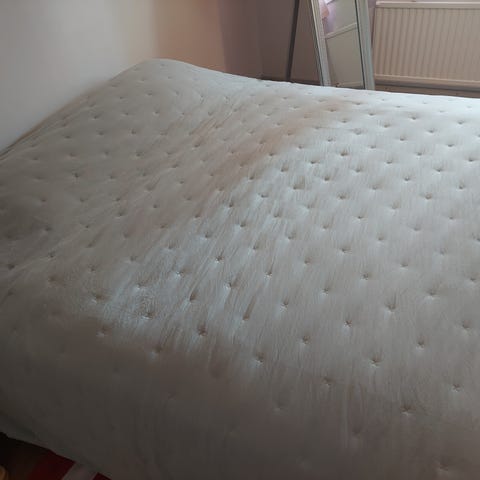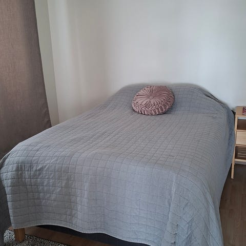Myydään päiväpeitto. Käyttämättä jäänyt. Samettinen, ihanan pehmeä. Aseteltu kuvaa varten kapeampaan särkyyn. Menee hyvin esim 120 cm leveään sänkyyn. Kuvassa auringon valo tekee yläosaan heijastuksen. Todellisuudessa väri tumma ja tasainen.