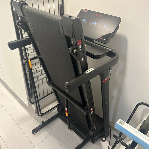 Juoksumatto sisäkäyttöön. Laitteessa on digitaalinen näyttö, Kaksi mukitelinettä. Juoksumatto on kokoon taitettava, mikä helpottaa säilytystä pienemmässä tilassa. Väri on musta sinisillä yksityiskohdilla.