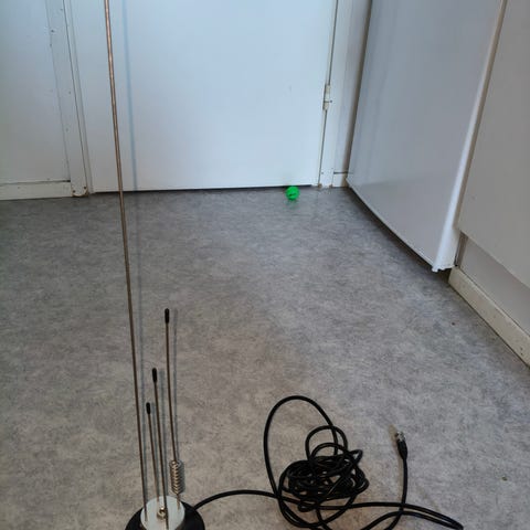 Vakioantennin lisäksi mukana juuresta taittuva teleskooppiantenni BNC liittimellä,