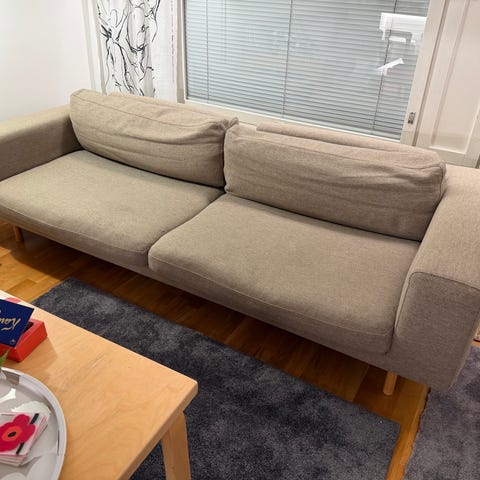 Kaikki on juuri pesty. Sohva on puhdas ja tahraton. Ei nukkaa.