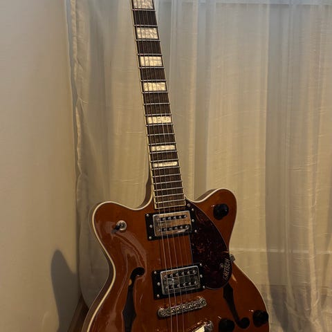 Gretsch puoliakustinen sähkökitara, jossa on ontto runko ja kaksi yksikelaista mikrofonia. Kitarassa on Bigsby-vibra, tune-o-matic -tyyppinen talla ja perinteinen f-aukollinen runkorakenne. Kaulassa on otelauta upotetuilla piste-merkeillä. Mukana kovakotelo, joka on muotoiltu kitaralle sopivaksi ja pehmustettu sisältä. Soveltuu sähköisesti vahvistettuun soittoon esimerkiksi jazz-, blues- ja rock-tyyleihin, omalla kovalla laukulla, boxiin taitaa mahtua nää esim 51-6120 paksuisetkin..ja voin toki myydä pelkän kitarankin 550€lla....
