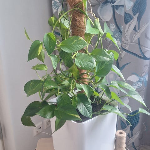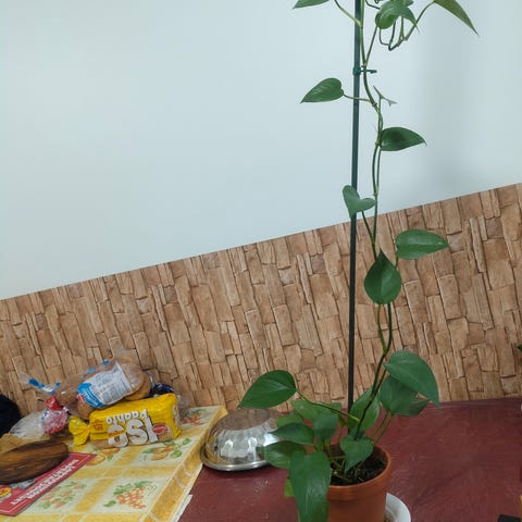 Ruukkuineen 163 cm korkea tuuhea kultaköynnös. Köynnös on vuosia sitten istutettu altakasteluruukkuun.