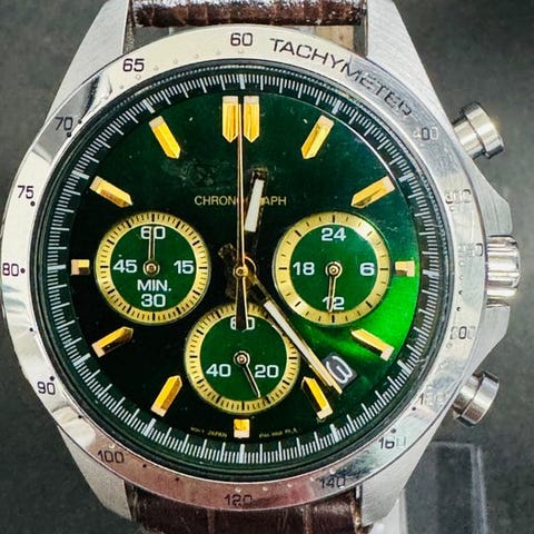 KuvausKotelon koko: 39 mm (halkaisija ilman kruunua) x 46 mm (luggista luggille)Päivämäärä: TyötChronograph: ToimiiKristalli: Hardlex-lasiRanneke: AlkuperäinenLiittimen leveys: 20 mmPituus mukaan lukien kellohead: 20 cmAkun kesto: Uusi akkuHuoltohistoria: tuntematonVakuutettu lähetys seuraavien kanavien kautta:Paikallinen toimitus: Paikallinen rekisteröity postiKansainvälinen lähetys: DHL ExpressTÄRKEITÄ HUOMIOITAVIA SEIKOJA!! HUOMIOI ENNEN HUUTAMISTA!!Kello myydään sellaisenaan. Ellei toisin mainita, takuuta ei myönnetä eikä kellon tarkkuuden, vedenkestävyyden jne. vaatimuksia hyväksytä tai käsitellä.2. Ostaja on vastuussa kunkin maan veroviranomaisten mahdollisesti määräämistä tulli- ja/tai arvonlisäveroista. Tarkista siis epävarmat asiat asianmukaisilta viranomaisilta ja tee tarjous sen mukaisesti. Jos ostaja ei vastaanota toimitusta maksamatta jääneiden verojen vuoksi, ostaja on silti vastuussa kaikista toimitus-, tulliselvitys- ja muista hallintokuluista.3. Jos ostaja peruuttaa tilauksen toimituksen jälkeen, ostaja on vastuussa kaikista palautuskuluista, hallinto- ja tullimaksuista, jotka aiheutuvat kellon palauttamisesta ja uudelleentuonnista.4. Kansainvälinen transit (pois lukien tullaus ja viimeinen maili -toimitus) kestää yleensä enintään 2 viikkoa, mutta voi kestää pidempään riippuen maasta ja paikasta, julkisista vapaapäivistä, Ukrainan sodasta, globaalista pandemiatilanteesta ja niin edelleen.Huomioithan myös, että meillä ei ole vaikutusvaltaa eikä kontrollia siihen, kuinka nopeasti kunkin maan tulliviranomaiset käsittelevät lähetyksen sen saapumisen jälkeen maahasi. Tämän vuoksi tarkista tullin tai postin kanssa, kun tavara saapuu maahan.