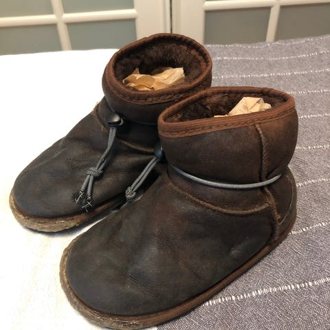 Myydään lasten ruskeat Zeazoo Dingo paljasjalkakengät. Todella lämpimät kengät, jotka tarkoitettu kuiville pakkaskeleille. Hyvä käytetty kunto, kärjet liimattu etteivät tikkaukset lähde purkautumaan. Kengän sisämitta noin 16 cm.