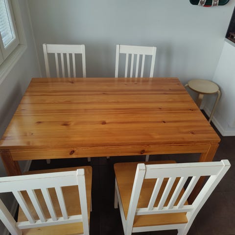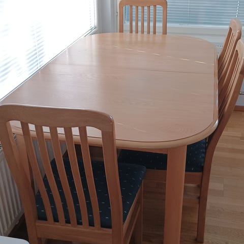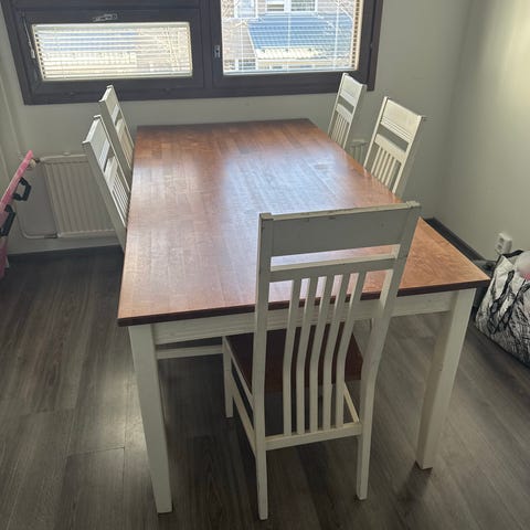 Myydään käytetty keittiön pöytä ja neljä tuolia. Sopii hyvin vaikka mökille tai pieneen keittiötilaan.