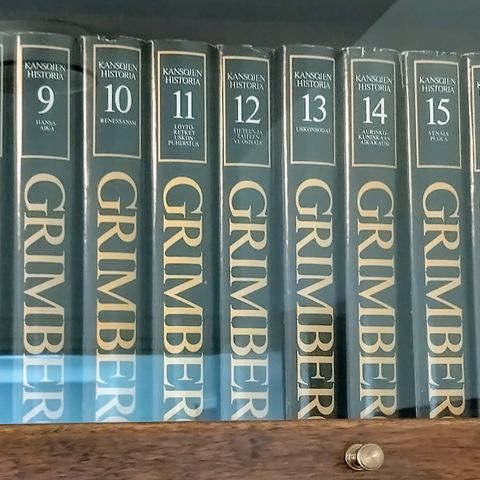 Myydään Grimbergin kuuluisan Kansojen historia -klassikkosarjan vanhempi nahkaselkäinen versio. Ensimmäistä, toista ja kolmatta painosta, vuosilta 1930–1942; jatko-osa vuodelta 1949. Kirjat siistissä kunnossa.