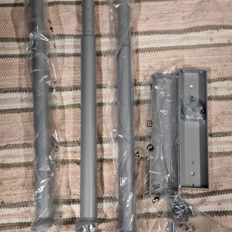 Tarpeettomana muuton alta kaksi pukkijalkaa. Toisella jatkojohdosta jäänyttä tarraa. Varmasti saa hinkuttamalla pois. Nouto pian Kauklahdesta.
