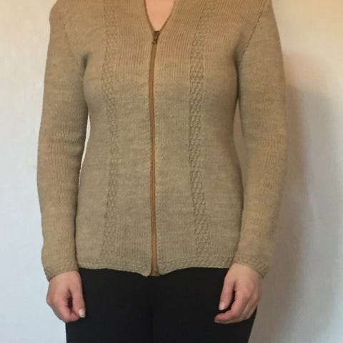 Käsinneulottu luonnonvalkoinen villatakki M